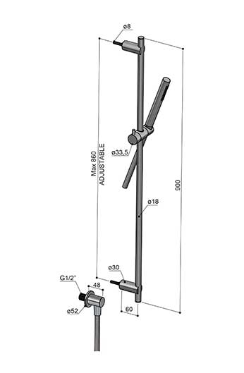 Asta saliscendi con doccetta, flessibile PVC e presa acqua