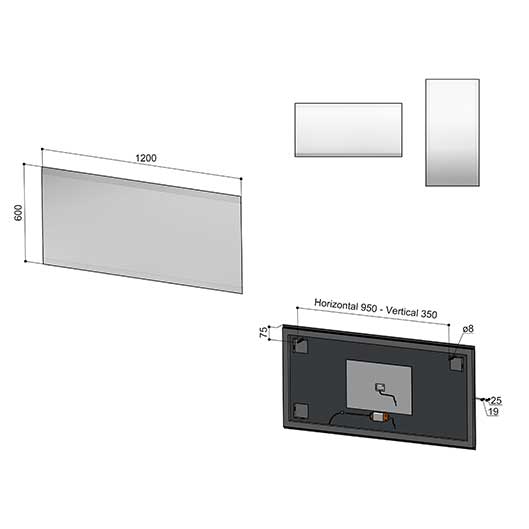 Specchio rettangolare con bordo bisellato, e retroilluminazione a LED